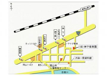 貸切りバス、自動車でお越しの場合は、岡山市人権啓発センター西隣の駐車場をご利用ください。大型バスの駐車も可能です。周辺道路はやや狭いですが、大型バスで来られる場合は乙多見西の交差点を曲がることをお勧めします。