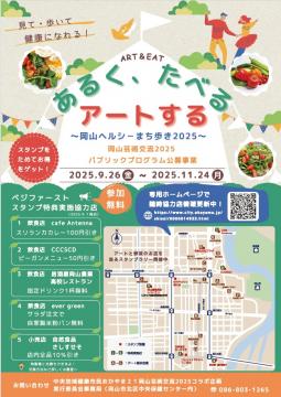 その開催期間に合わせ、アートと健康をテーマに、アートスポットとベジファーストOKAYAMAプロジェクト協力店をめぐるスタンプラリーを実施します。