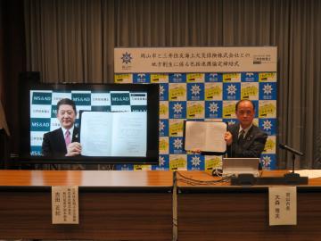 岡山市は、三井住友海上火災保険株式会社と、相互の各種資源を活用して幅広い連携・協力関係を築き、地方創生の諸課題に具体的に取り組むことにより、地域の発展に寄与するため、「地方創生に係る包括連携協定」を締結しました。