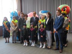 第21回全国小学生ソフトテニス大会で優勝した選手及び関係者が、大森雅夫岡山市長を表敬訪問しました。