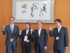 第7回全世界ウエイト制空手道選手権大会に出場する石原凜々選手及び関係者が、大森雅夫岡山市長を表敬訪問しました。