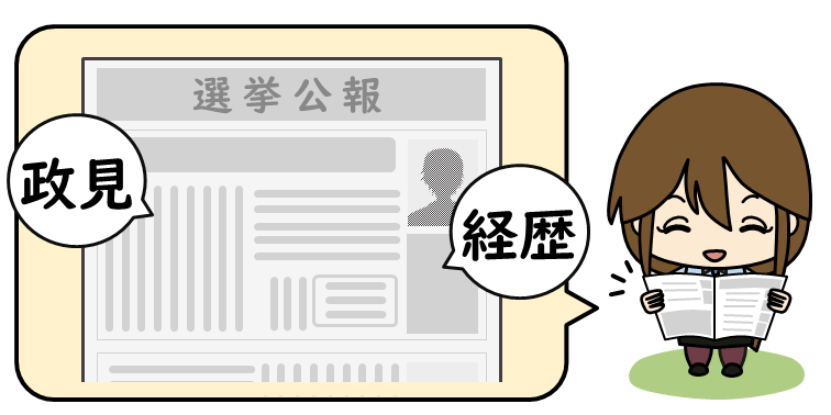 選挙公報は、候補者や政党の政見などを記載したもので、選挙があるときに発行されます。新聞紙のような形状で、発行時期は選挙の種類によって異なります。みなさんが投票先を選ぶための情報の一つになります。