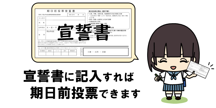 入場券がなくても、選挙人名簿に登録されている方は「宣誓書」に記入すれば、期日前投票できます。