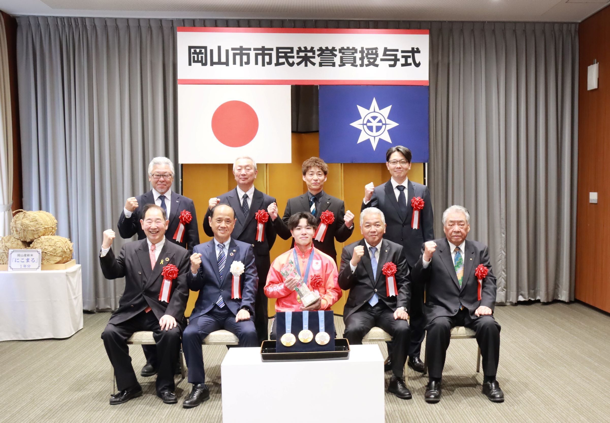 2024年に開催されたパリ・オリンピック体操競技において、団体男子、個人総合、種目別鉄棒で金メダルを、平行棒で銅メダルを獲得した岡慎之助(おか しんのすけ)選手の偉業を讃え、令和6年12月8日(日曜日)に授与式を開催し、岡山市市民栄誉賞を授与しました。