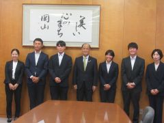 トライフープ岡山の選手・ヘッドコーチ等が、「B3リーグ2025-26シーズン」ホーム開幕にあたり、大森雅夫岡山市長を表敬訪問しました。