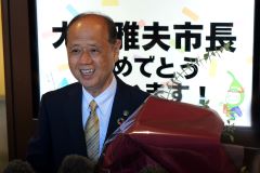 大森雅夫岡山市長は、職員らが出迎える中、市役所に選挙後初登庁しました。