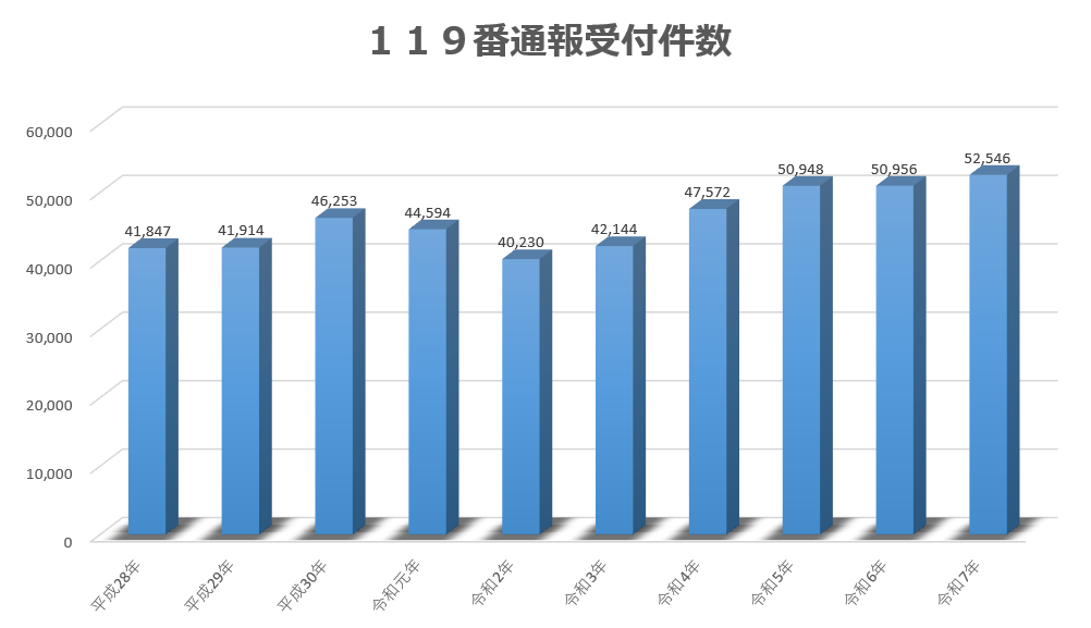 【速報値】令和7年の119番の受付件数は52,546件でした。