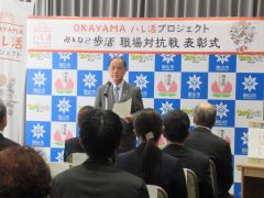 「OKAYAMAハレ活プロジェクト」第3回みんなで歩活職場対抗戦表彰式が行われ、大森雅夫岡山市長が出席しました。