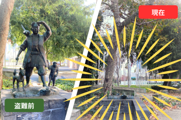 ←何者かによって切断されてしまったサンノゼ市の桃太郎像