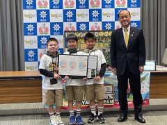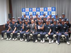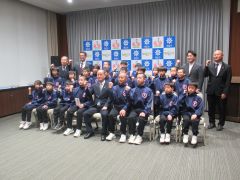 「オーストラリア親善交流派遣団」(ソフトボール)の日本代表に選出された岡山少年ソフトボールクラブ所属の選手・関係者が、大森雅夫岡山市長を表敬訪問しました。