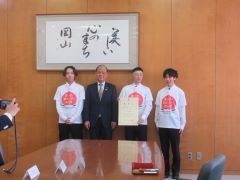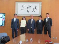 令和7年度 企業誘致活動用グッズデザイン・動画コンテスト表彰式が開催され、大森雅夫岡山市長が出席しました。