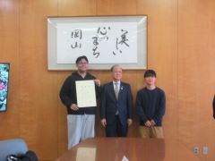 「第20回全国高校生<書道>S-1グランプリ」でグランプリに輝いた明誠学院高等学校書道部が、大森雅夫岡山市長を表敬訪問しました。