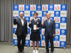 エンジョイ!剣道フェスティバル2026に出場する南輝剣道スポーツ少年団の清水結月選手と関係者が、大森雅夫岡山市長を表敬訪問しました。