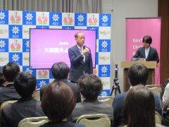 GovTech Challenge OKAYAMA 2025成果報告会が開催され、大森雅夫岡山市長が出席しました。