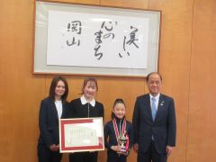 第27回全日本新体操チャイルド選手権で優勝した竹本吏世選手と関係者が、大森雅夫岡山市長を表敬訪問しました。