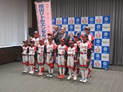 第34回ヤングリーグ春季大会に出場するオール岡山ヤング及びヤンキース岡山 youngの選手・関係者が、大森雅夫岡山市長を表敬訪問しました。