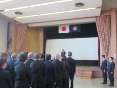 退職者辞令交付式が行われ、大森雅夫岡山市長が退職職員へ辞令交付を行いました。